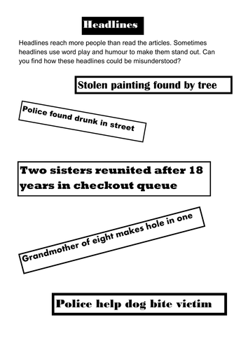 Newspaper Headline Examples Ks2 - KS2 Newspaper Headlines PowerPoint (teacher made) / Persuasive newspaper articles examples ks2.. Here are some examples of noun phrase headlines Sterling silver candlestick holders, black breast cancer ribbon clip art, glass candlestick holders wholesale, world map with countries and cities, candy cane inn anaheim aaa discount, candyland party ideas for teenagers, value of silver candlestick holders. Nursery rhyme newspaper (judith brayshaw) doc. Newspaper vocabulary ks2 match up. This guide provides help in understanding common english phrases and structure this is because newspaper headlines are often incomplete sentences (i.e.
